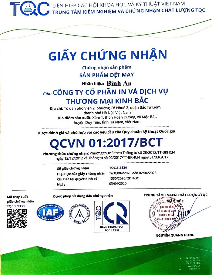 - Sản phẩm đạt TCCS 01:2020/KB
